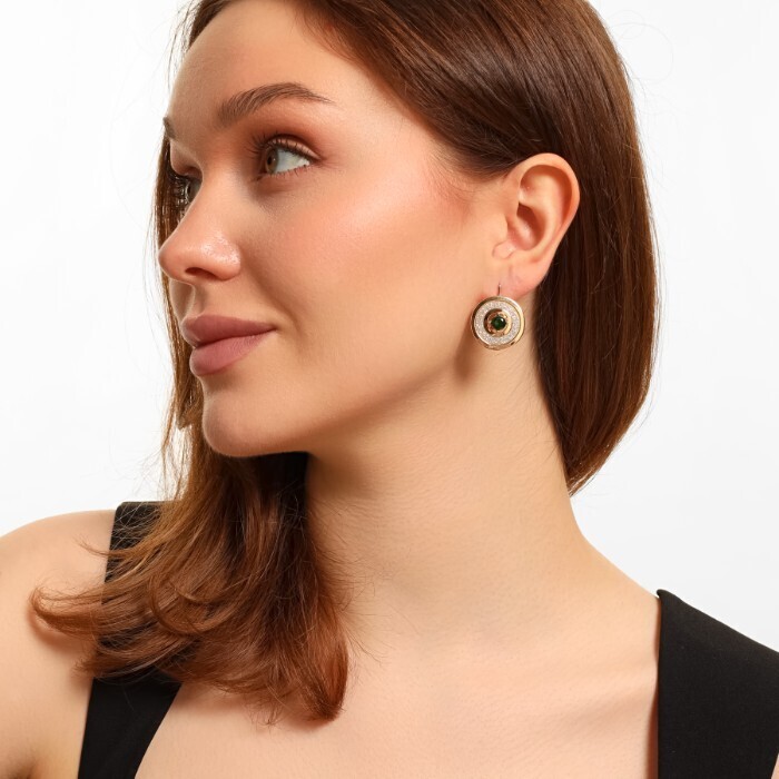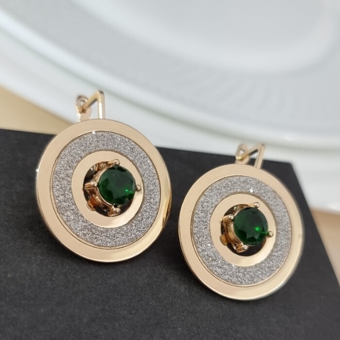 Серьги ювелирная бижутерия Дубайское золото, с покрытием позолотой 18К, вставка: блестящий глиттер и фианит, цвет: зеленый, арт.216.256