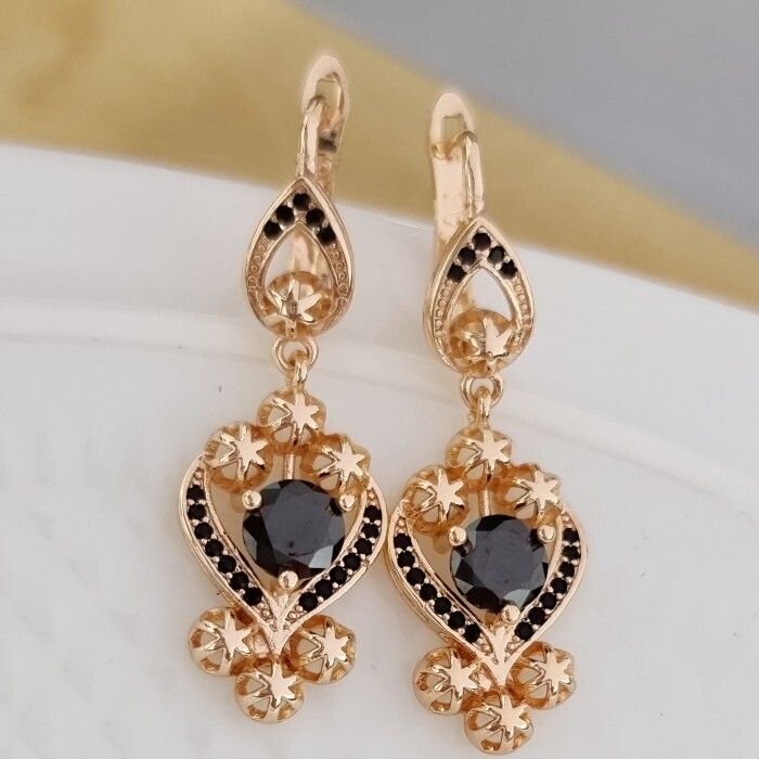 Серьги ювелирная бижутерия Дубайское золото, с покрытием позолотой 18К, вставка: циркон, цвет: черный, арт.215.087