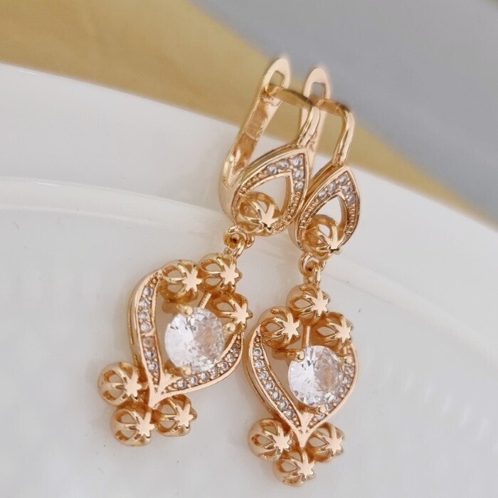 Серьги ювелирная бижутерия Дубайское золото, с покрытием позолотой 18К, вставка: циркон, цвет: прозрачный, арт.215.089