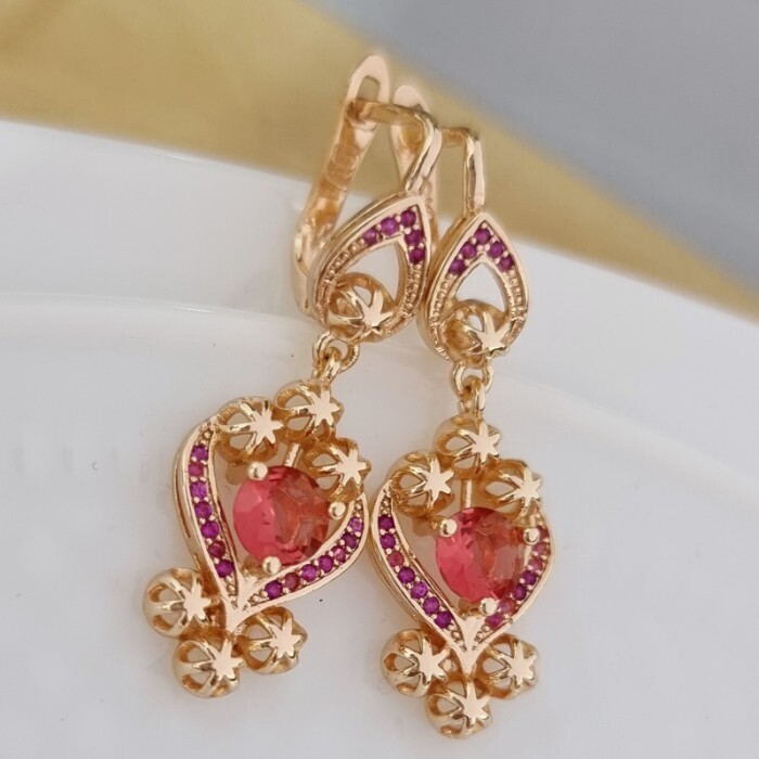 Серьги ювелирная бижутерия Дубайское золото, с покрытием позолотой 18К, вставка: циркон, цвет: розовый, арт.215.088