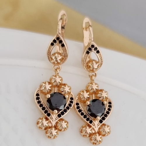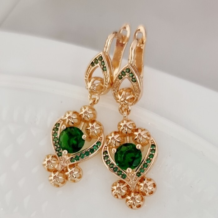 Серьги ювелирная бижутерия Дубайское золото, с покрытием позолотой 18К, вставка: циркон, цвет: зеленый, арт.215.086