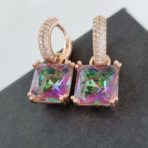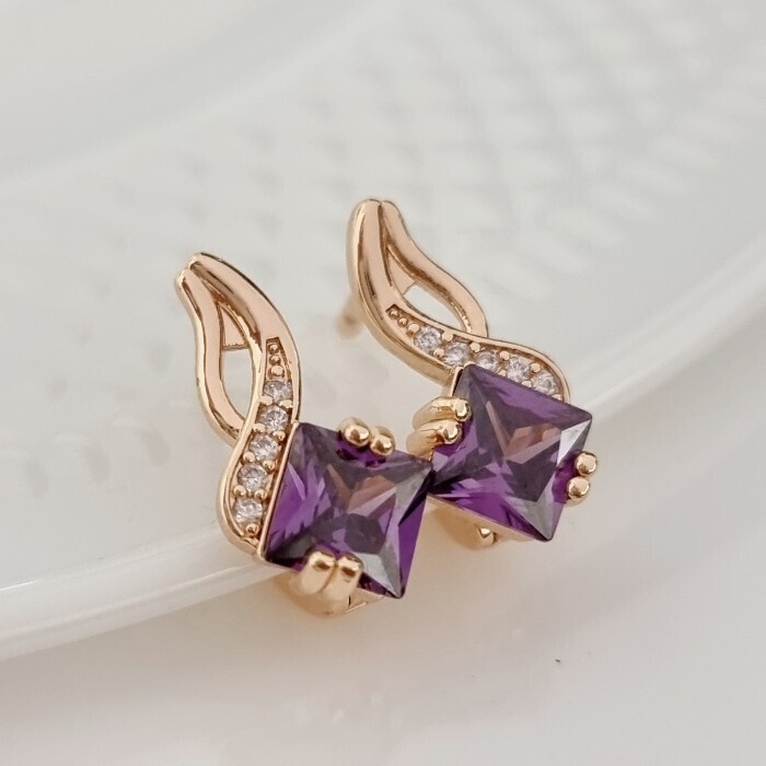 Серьги ювелирная бижутерия Дубайское золото, с покрытием позолотой 18К, вставка: фианит, цвет: фиолетовый, арт.215.093