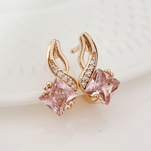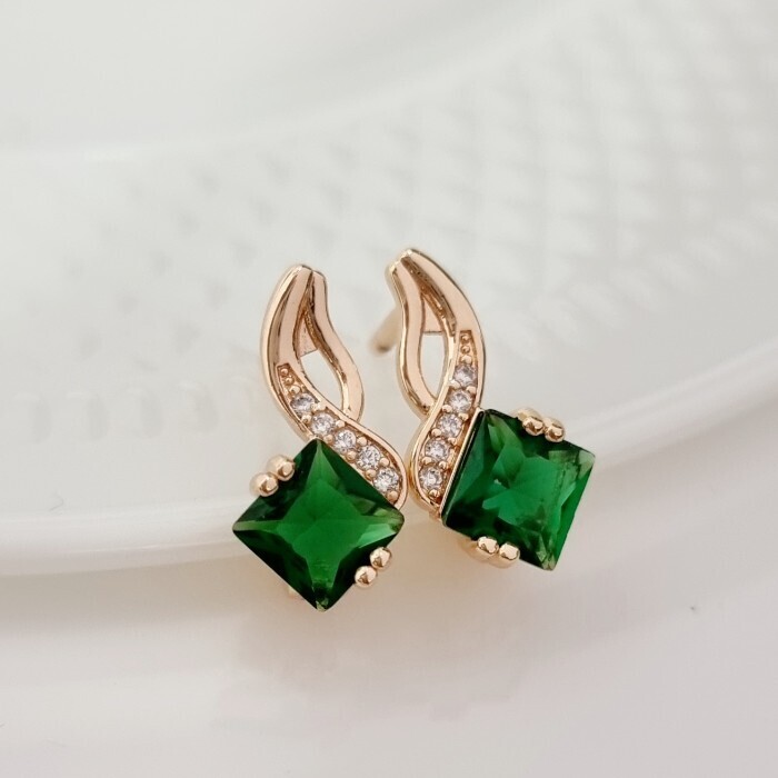 Серьги ювелирная бижутерия Дубайское золото, с покрытием позолотой 18К, вставка: фианит, цвет: изумрудный, арт.215.091