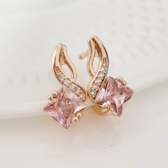 Серьги ювелирная бижутерия Дубайское золото, с покрытием позолотой 18К, вставка: фианит, цвет: розовый, арт.215.092