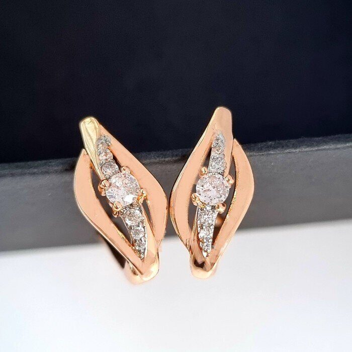 Серьги ювелирная бижутерия Дубайское золото, с покрытием позолотой 18К, вставка: фианиты, арт. 215.044