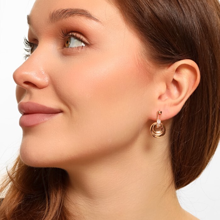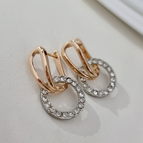 Серьги ювелирная бижутерия Дубайское золото, с покрытием позолотой 18К, вставка: фианиты, цвет: прозрачный, арт.216.239