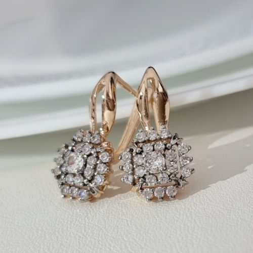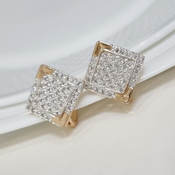 Серьги ювелирная бижутерия Дубайское золото, с покрытием позолотой 18К, вставка: фианиты, цвет: прозрачный, арт.216.257