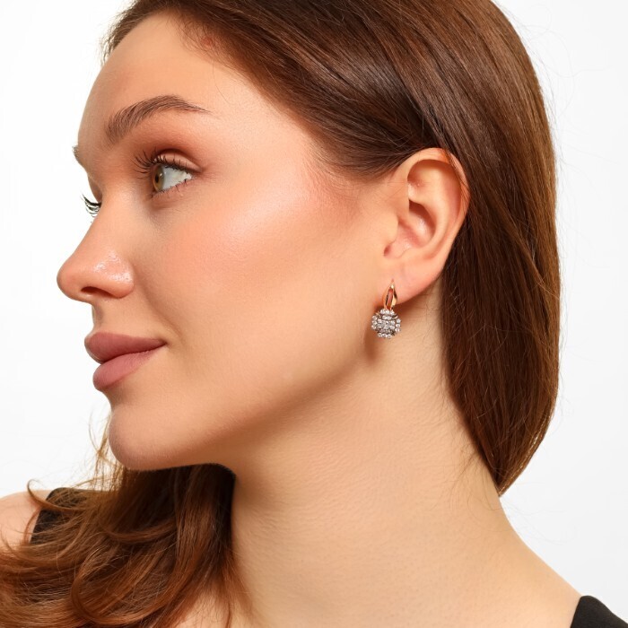 Серьги ювелирная бижутерия Дубайское золото, с покрытием позолотой 18К, вставка: фианиты, цвет: прозрачный,Уценка, арт.08.2591