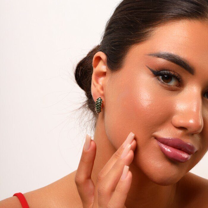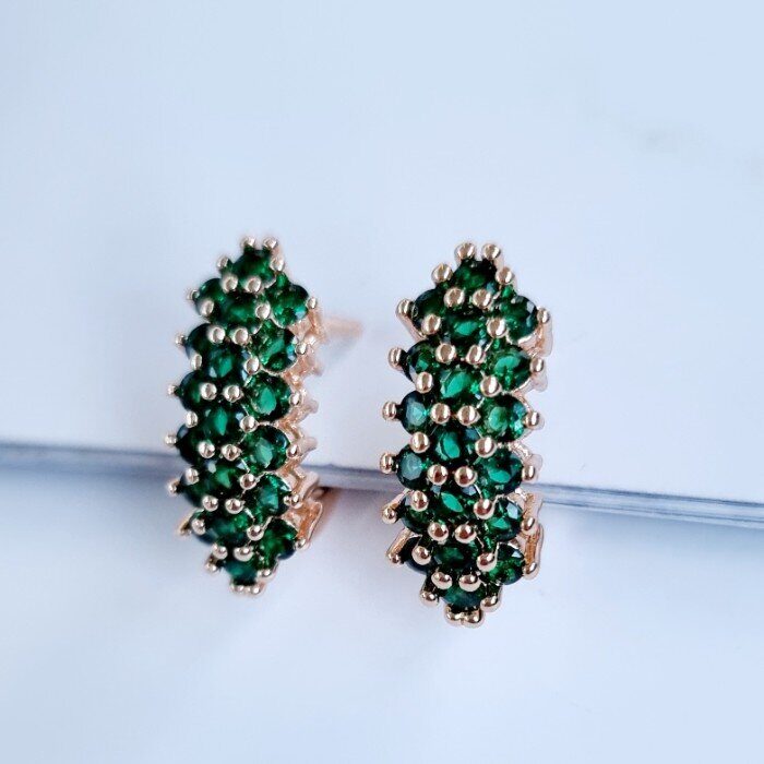 Серьги ювелирная бижутерия Дубайское золото, с покрытием позолотой 18К, вставка: фианиты, цвет: зеленый, арт.214.674