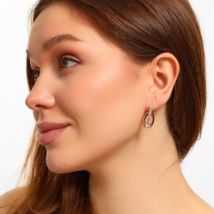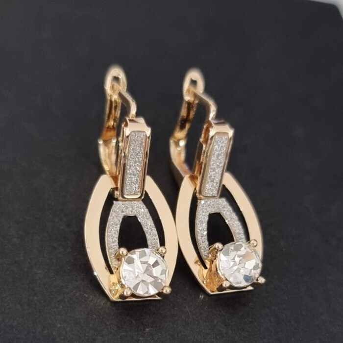 Серьги ювелирная бижутерия Дубайское золото, с покрытием позолотой 18К, вставка: фианиты и глиттер, цвет: прозрачный, арт.216.211