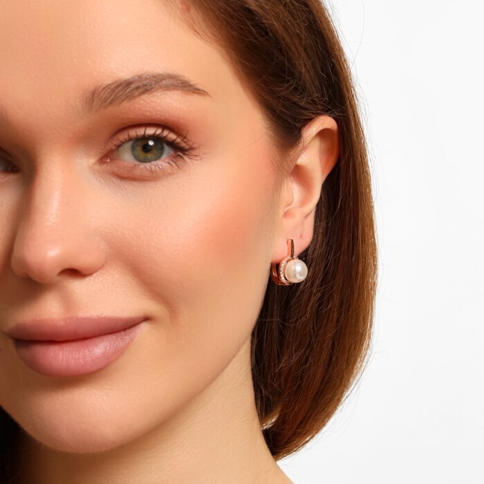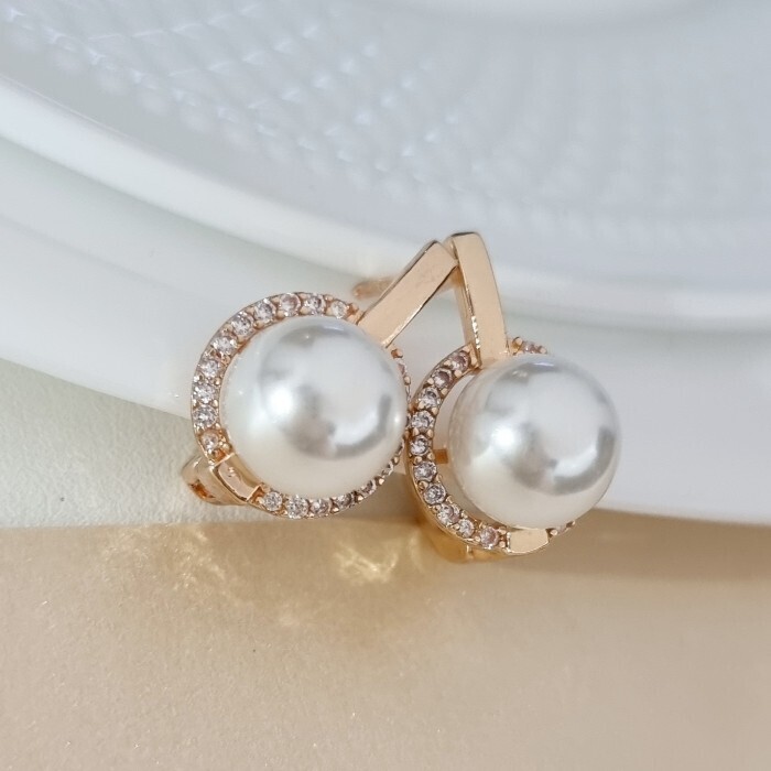 Серьги ювелирная бижутерия Дубайское золото, с покрытием позолотой 18К, вставка: фианиты и искусственный жемчуг, цвет: прозрачный, арт.216.226