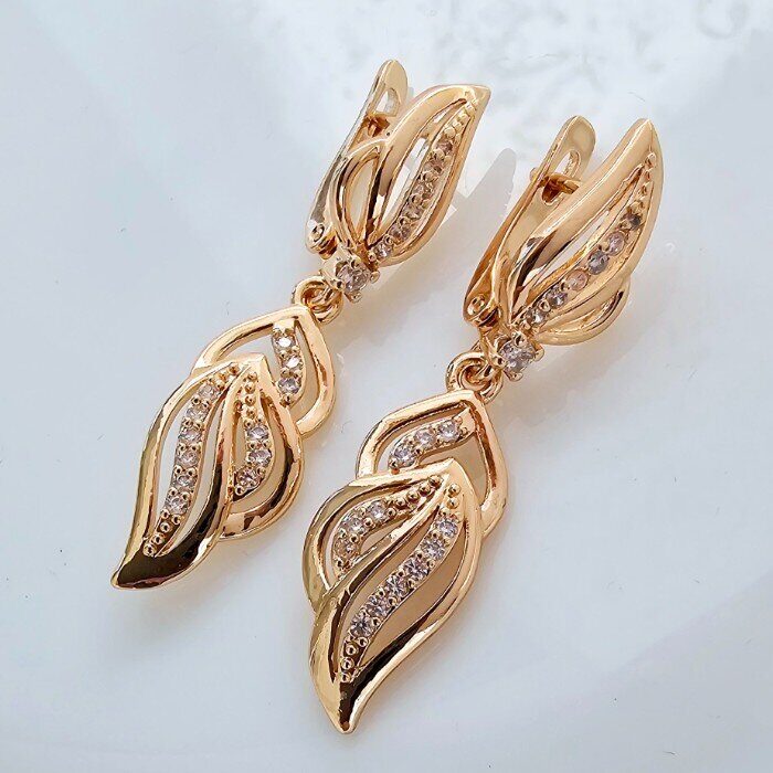 Серьги ювелирная бижутерия Дубайское золото, с покрытием позолотой, вставка: фианиты, 0590, арт.214.597