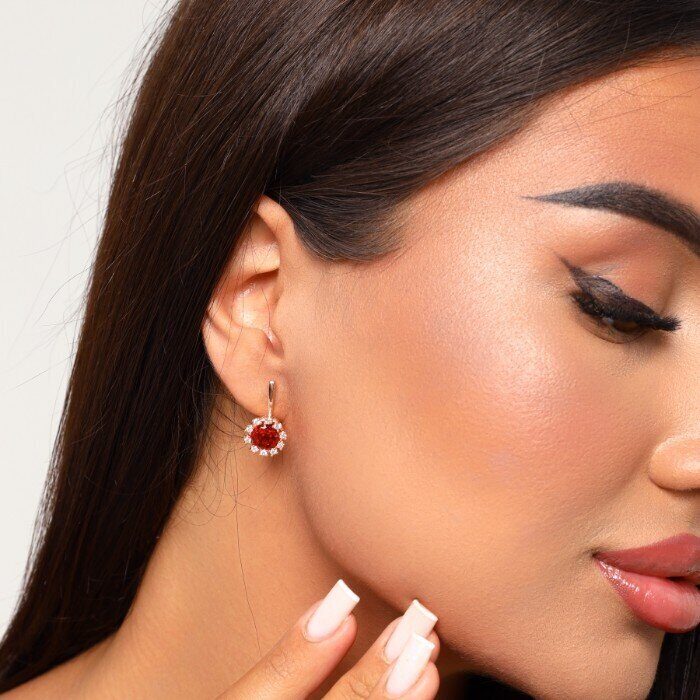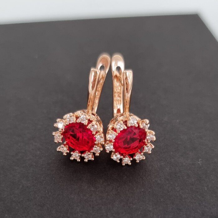 Серьги ювелирная бижутерия Дубайское золото, с покрытием позолотой, вставка: фианиты и крупный красный камень, арт.214.626
