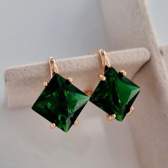 Серьги ювелирная бижутерия Дубайское золото, с покрытием позолотой, вставка: зеленый камень, 0440, арт.214.591