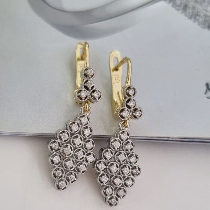 Серьги ювелирная бижутерия Итальянское золото (покрытие желтое 14к), вставка: фианиты, арт. 217.108