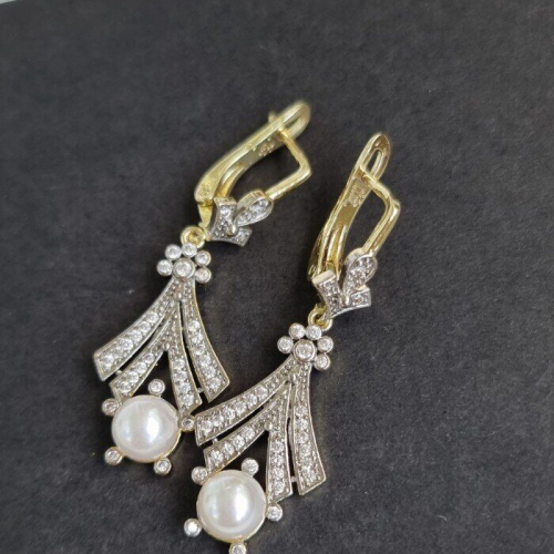 Серьги ювелирная бижутерия Итальянское золото (покрытие желтое 14к), вставка: фианиты, арт. 217.109