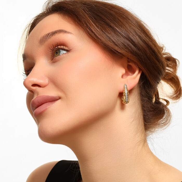 Серьги ювелирная бижутерия Итальянское золото (покрытие желтое 14к), вставка: фианиты, цвет: прозрачный, арт.216.172
