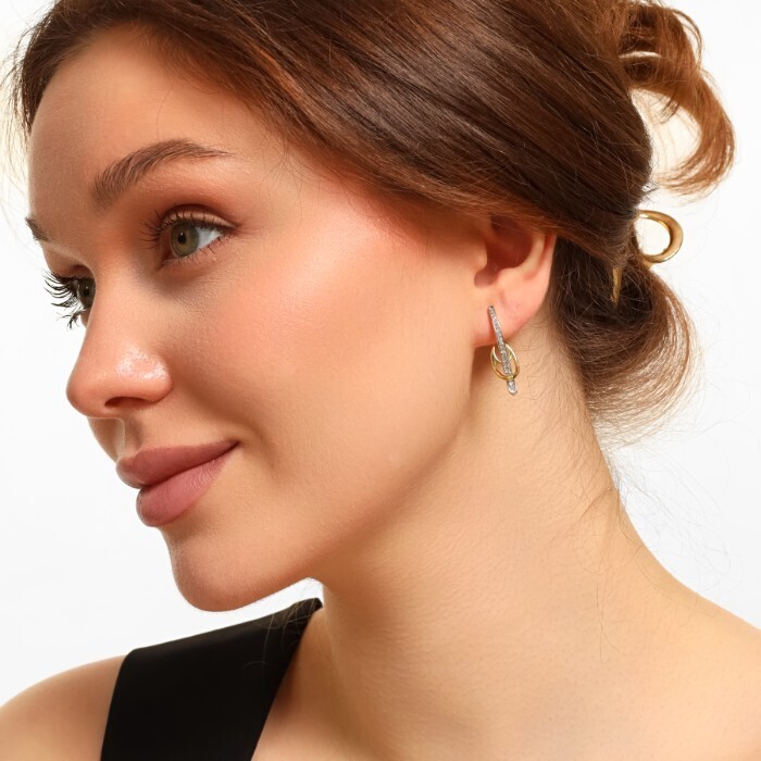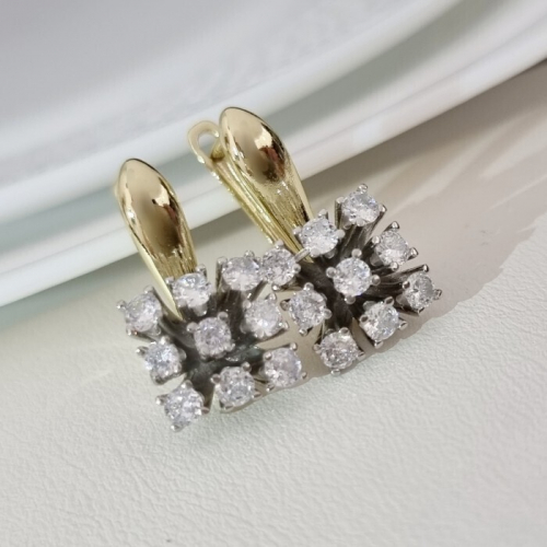 Серьги ювелирная бижутерия Итальянское золото (покрытие желтое 14к), вставка: фианиты, цвет: прозрачный, арт.216.174