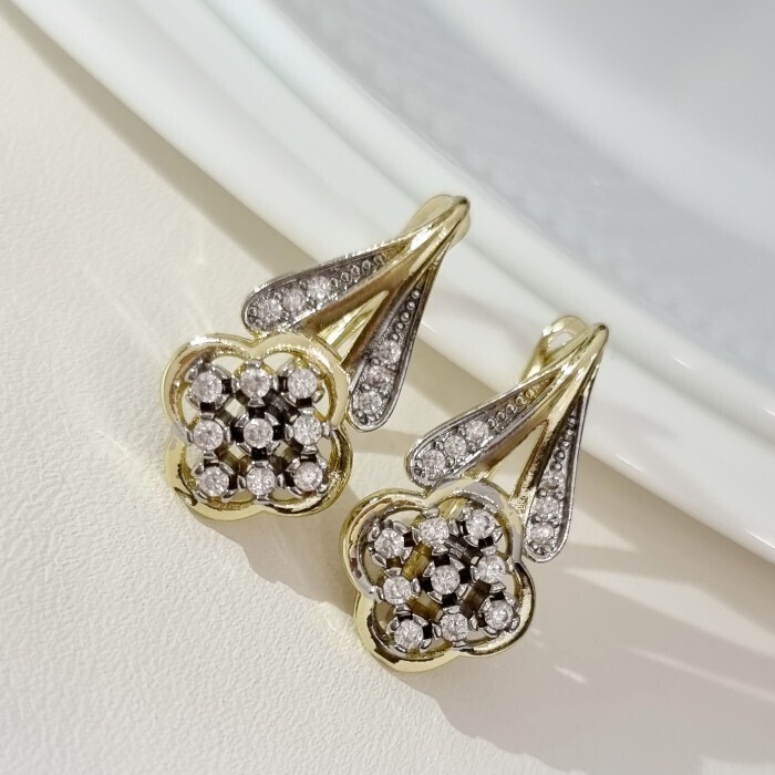 Серьги ювелирная бижутерия Итальянское золото (покрытие желтое 14к), вставка: фианиты, цвет: прозрачный, арт.216.176