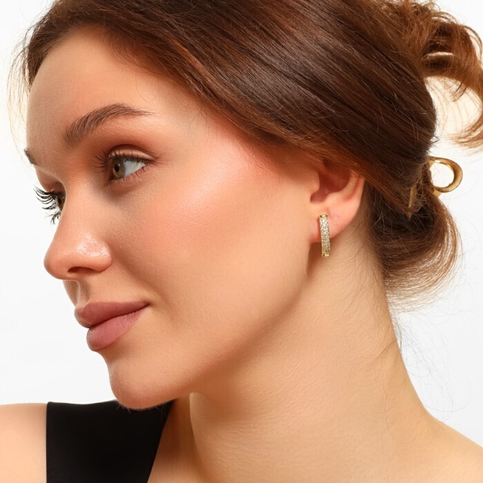 Серьги ювелирная бижутерия Итальянское золото (покрытие желтое 14к), вставка: фианиты, цвет: прозрачный, арт.216.201