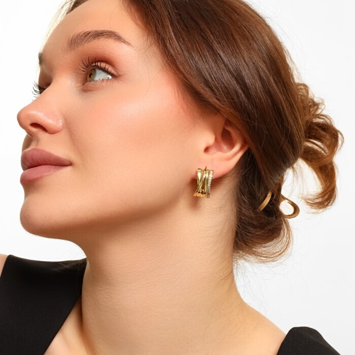 Серьги ювелирная бижутерия Итальянское золото (покрытие желтое 14к), вставка: фианиты, цвет: прозрачный, арт.216.202