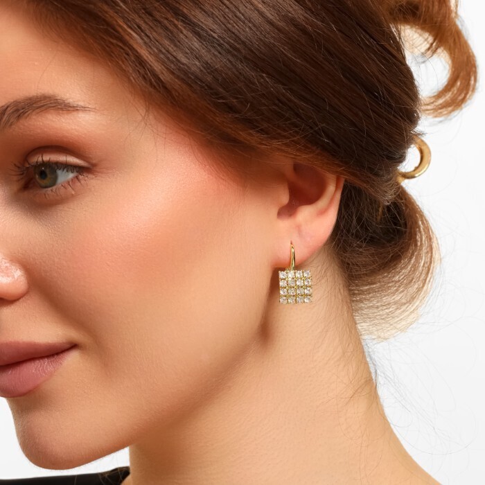 Серьги ювелирная бижутерия Итальянское золото (покрытие желтое 14к), вставка: фианиты, цвет: прозрачный, арт.216.203