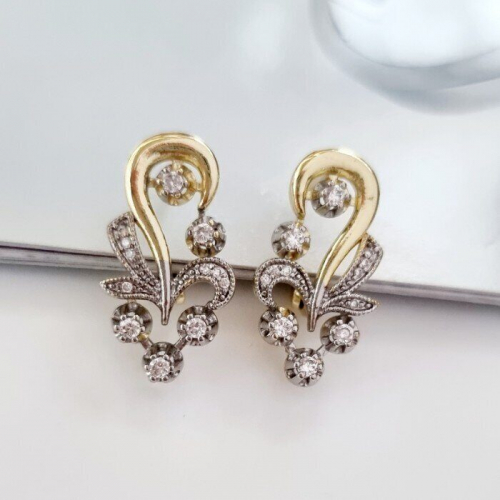 Серьги ювелирная бижутерия Итальянское золото (покрытие желтое 14к), вставка: фианиты, цвет: прозрачный, арт.217.135