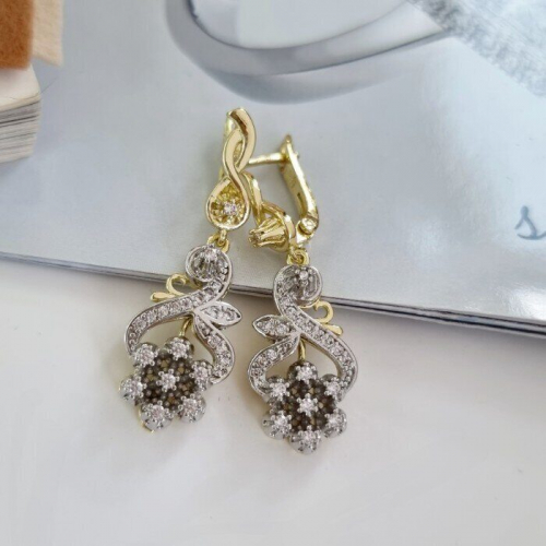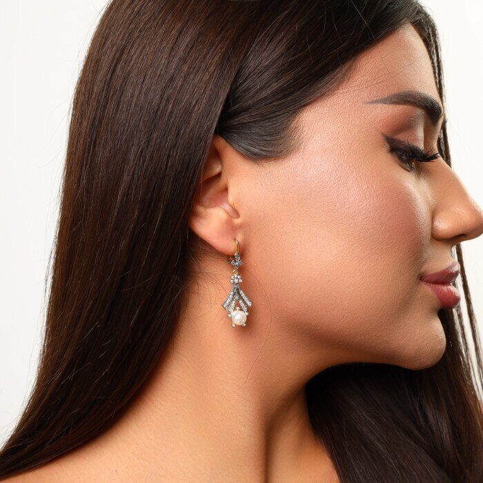 Серьги ювелирная бижутерия Итальянское золото (покрытие желтое 14к), вставка: фианиты и искусственный жемчуг, арт. 217.111
