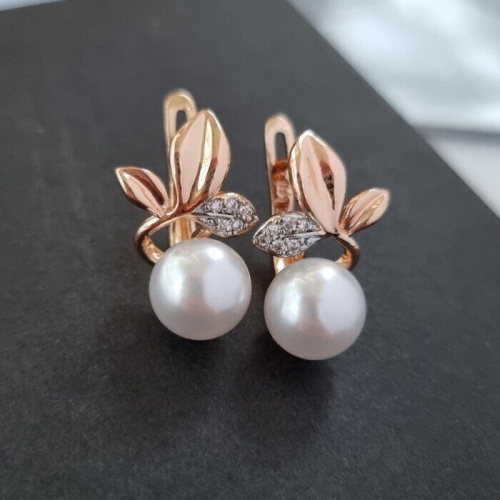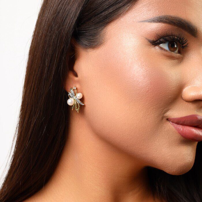 Серьги ювелирная бижутерия Итальянское золото (покрытие желтое 14к), вставка: фианиты и искусственный жемчуг, арт. 217.114