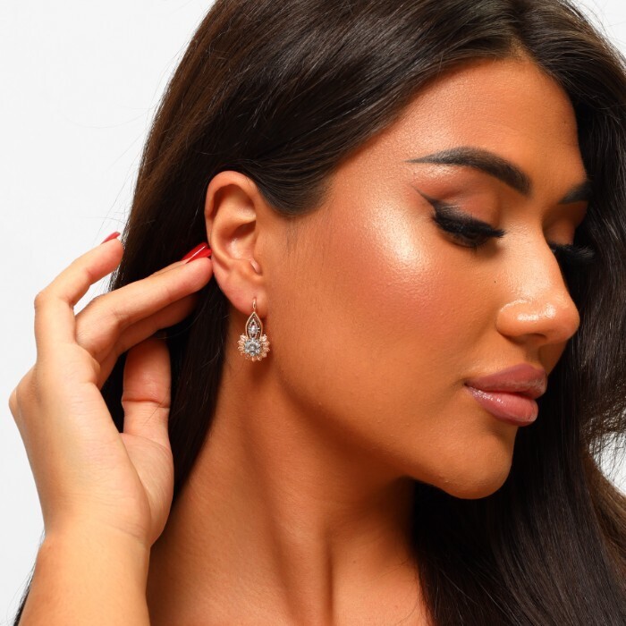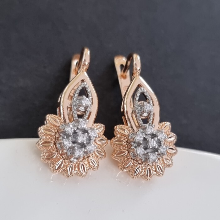 Серьги ювелирная бижутерия коллекция "Дубай" двойное покрытие: позолота и серебро, вставка: фианиты, цвет: прозрачный, арт.214.786