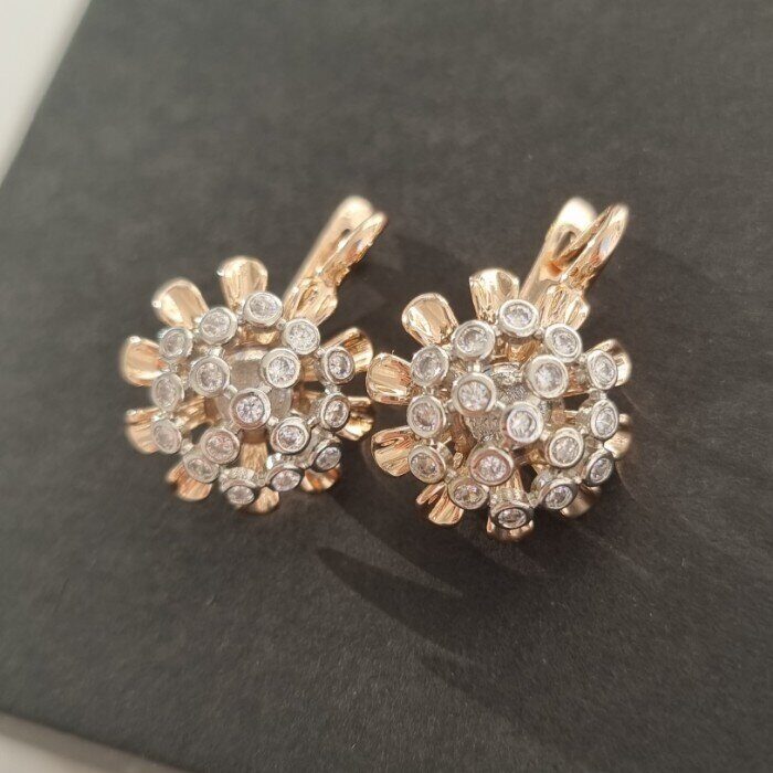 Серьги ювелирная бижутерия коллекция "Дубай" покрытие: посеребрение с позолотой, вставка: фианиты, арт.214.422