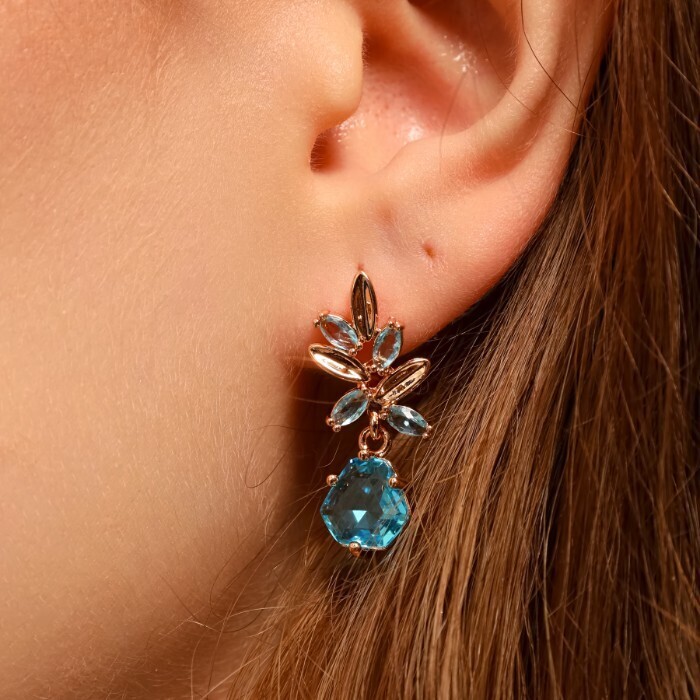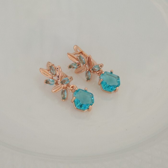 Серьги ювелирная бижутерия коллекция "Дубай" покрытие позолота, вставка: фианиты, цвет: голубой, арт.314.227