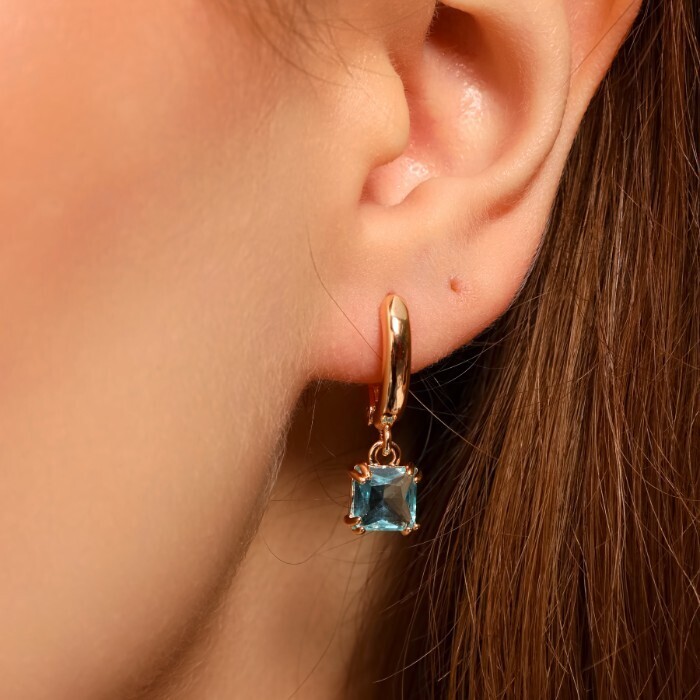 Серьги ювелирная бижутерия коллекция "Дубай" покрытие позолота, вставка: фианиты, цвет: голубой, арт.314.241