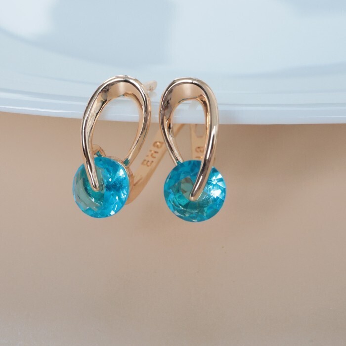 Серьги ювелирная бижутерия коллекция "Дубай" покрытие позолота, вставка: фианиты, цвет: голубой, арт.314.301