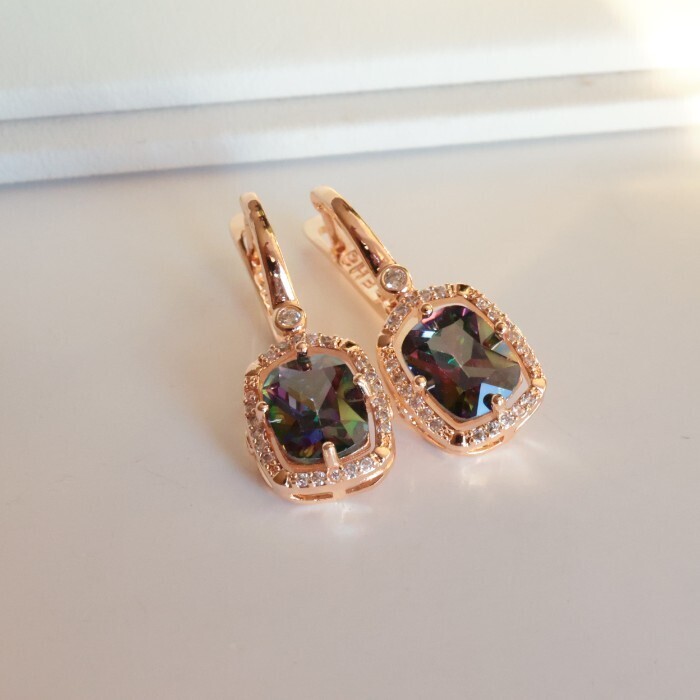 Серьги ювелирная бижутерия коллекция "Дубай" покрытие позолота, вставка: фианиты, цвет: хамелеон, арт.314.277