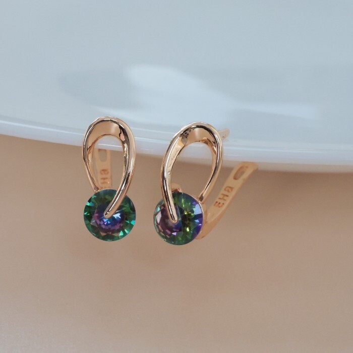 Серьги ювелирная бижутерия коллекция "Дубай" покрытие позолота, вставка: фианиты, цвет: мистик, арт.314.299