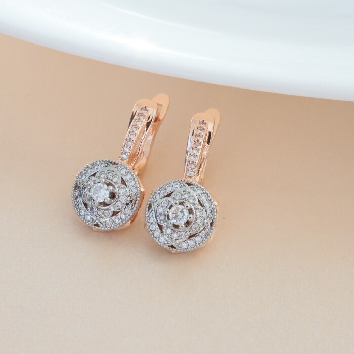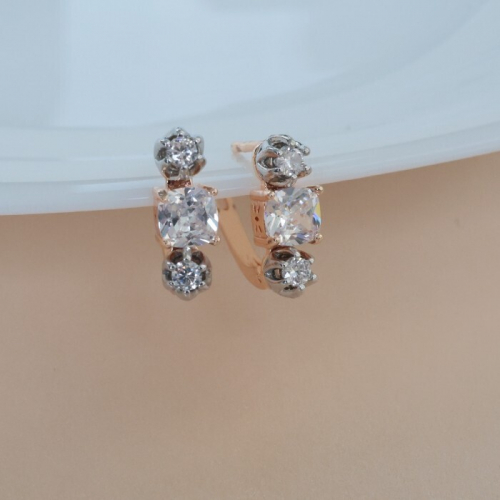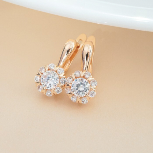 Серьги ювелирная бижутерия коллекция "Дубай", покрытие позолота, вставка: фианиты, цвет: прозрачный, арт.213.555