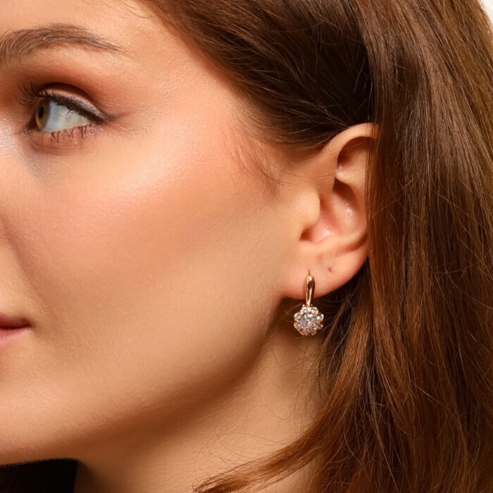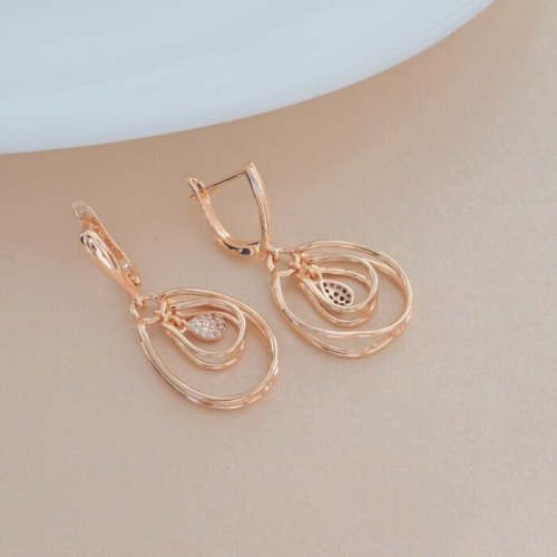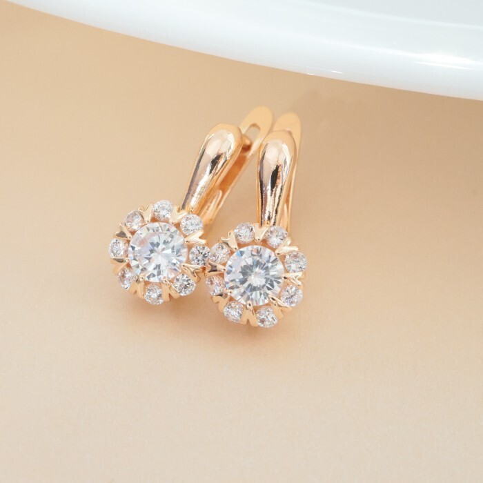 Серьги ювелирная бижутерия коллекция "Дубай", покрытие позолота, вставка: фианиты, цвет: прозрачный, арт.213.556