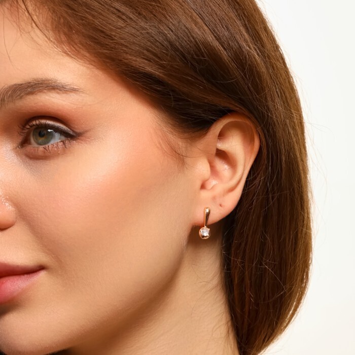 Серьги ювелирная бижутерия коллекция "Дубай", покрытие позолота, вставка: фианиты, цвет: прозрачный, арт.213.567