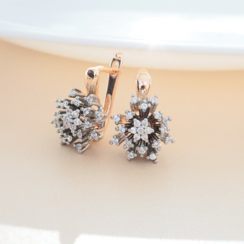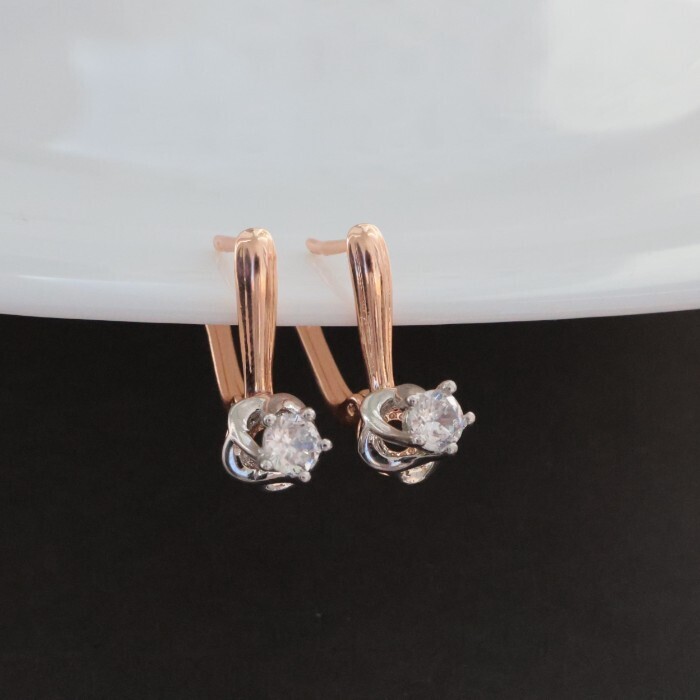 Серьги ювелирная бижутерия коллекция "Дубай", покрытие позолота, вставка: фианиты, цвет: прозрачный, арт.213.576