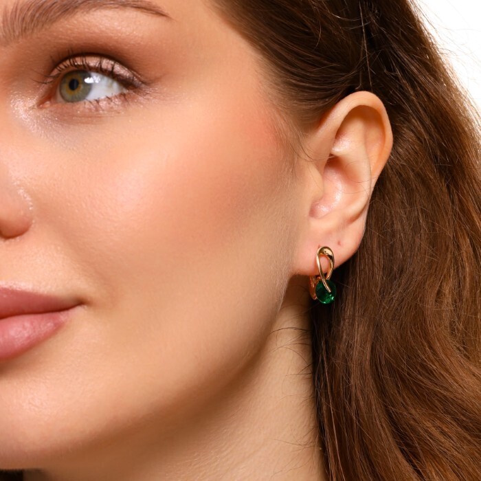 Серьги ювелирная бижутерия коллекция "Дубай" покрытие позолота, вставка: фианиты, цвет: зеленый, арт.314.304
