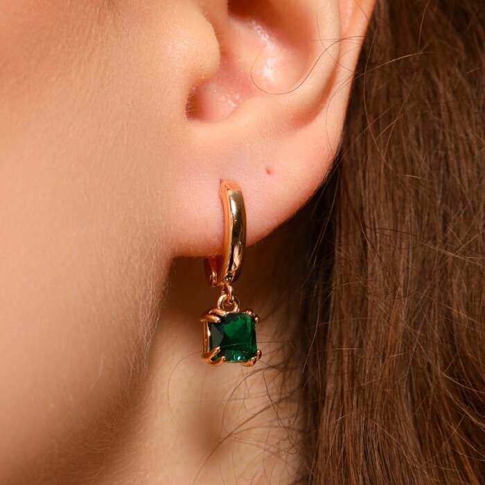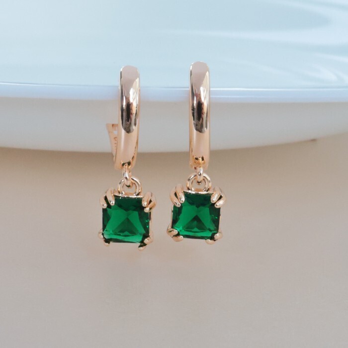 Серьги ювелирная бижутерия коллекция "Дубай" покрытие позолота, вставка: фианиты, цвет: зеленый, арт.314.341