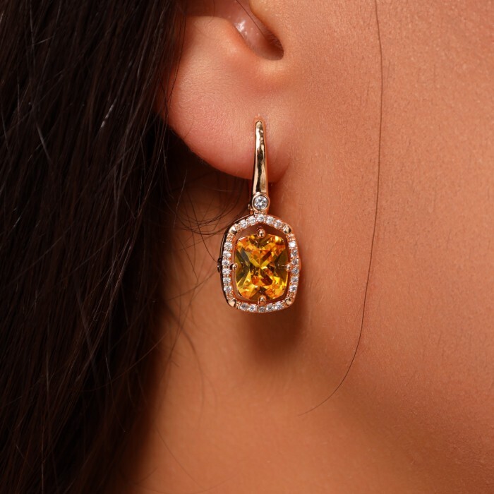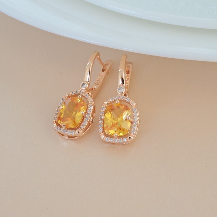 Серьги ювелирная бижутерия коллекция "Дубай" покрытие позолота, вставка: фианиты, цвет: желтый, арт.314.276