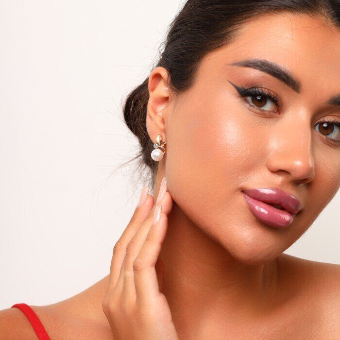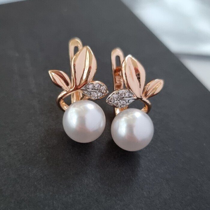Серьги ювелирная бижутерия коллекция "Дубай" покрытие: позолота, вставка: фианиты и искусственный жемчуг, арт.217.132