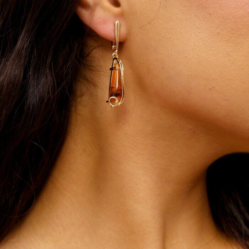 Серьги ювелирная бижутерия коллекция "Дубай" покрытие: позолота, вставка: иск.янтарь, 057, арт.214.503