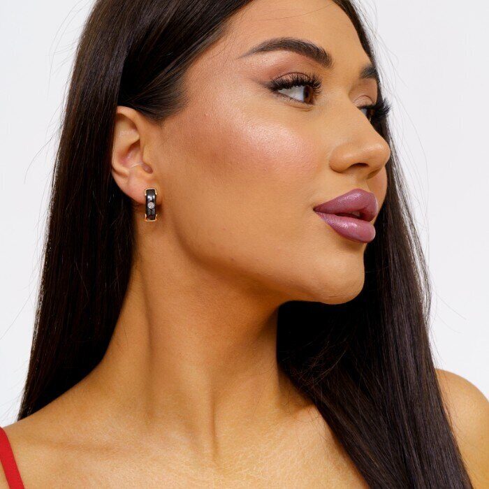 Серьги ювелирная бижутерия коллекция "Дубай", покрытие: позолота, вставка: керамика, цвет: черный, арт.214.441