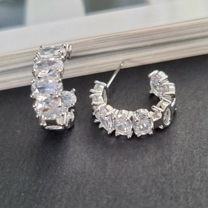 Серьги ювелирная бижутерия коллекция "Дубай" посеребрение, цвет камня: белый, 351492, арт.947.312