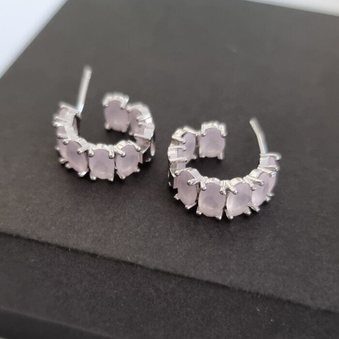 Серьги ювелирная бижутерия коллекция "Дубай" посеребрение, цвет камня: розовый матовый, 351492, арт.947.751