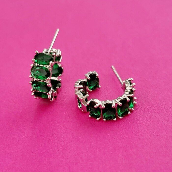 Серьги ювелирная бижутерия коллекция "Дубай" посеребрение, цвет камня: зеленый, 351492, арт.947.313