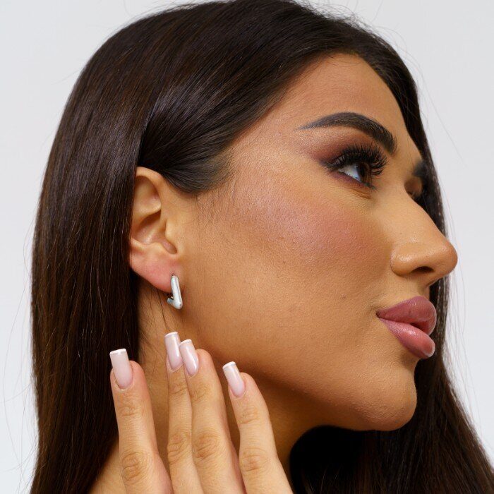 Серьги ювелирная бижутерия коллекция "Дубай" посеребрение, цвет вставки: светло - серый, арт. 001.281